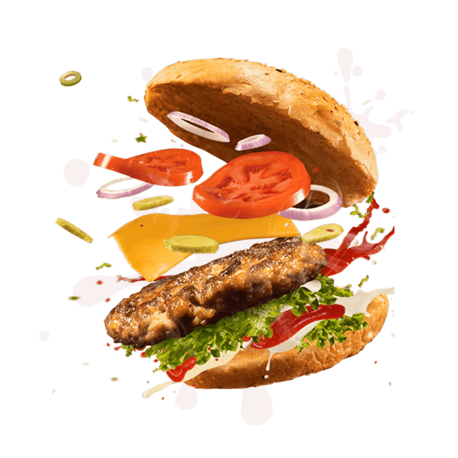 Juicy beef burger loaded with toppings, golden fries, and a refreshing drink — the ultimate go-to meal for burger lovers.